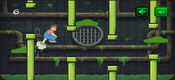 Toca la pantalla para que Bill se impulse por los aires y evitar tropezar con las tuberías y caer en las aguas negras.